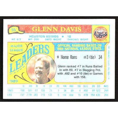 This is a 1990 Topps Mini Leaders Glenn Davis baseball card. The card is #55 and pictures show condition.