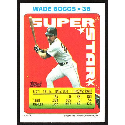 This is a 1990 Topps Stickers Wade Boggs, Paul O'Neill and Bryan Harvey baseball card. The card is #40-141-175 and pictures show condition. Team(s): Boston Red Sox/Cincinnati Reds/California Angels