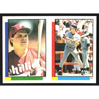 This is a 1990 Topps Stickers Dennis Eckersley, John Kruk and Dan Pasqua Super Star Backs baseball card. The card is #64/117/306 and pictures show condition.