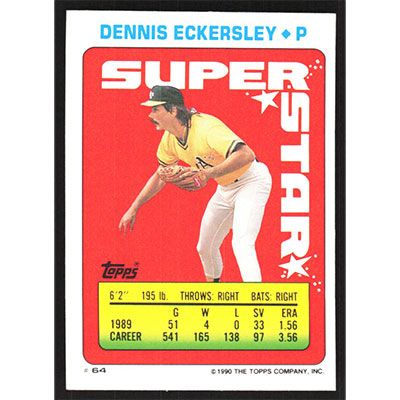 This is a 1990 Topps Stickers Dennis Eckersley and Will Clark Super Star Backs/All-Star baseball card. The card is #64/147 and pictures show condition.