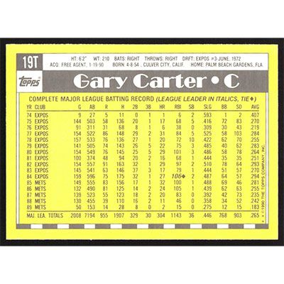 This is a 1990 Topps Traded Gary Carter baseball card. The card is #19T and pictures show condition.