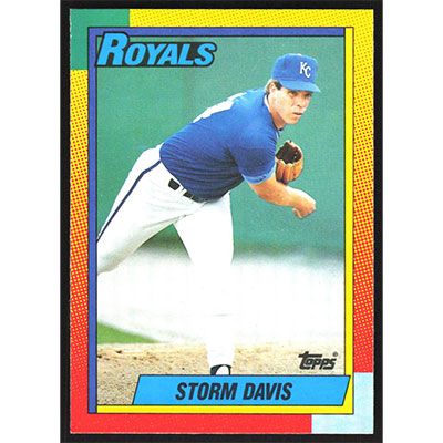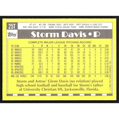 This is a 1990 Topps Traded Storm Davis baseball card. The card is #25T and pictures show condition.