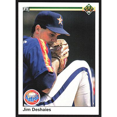 This is a 1990 Upper Deck Jim Deshaies baseball card. The card is #221 and pictures show condition.