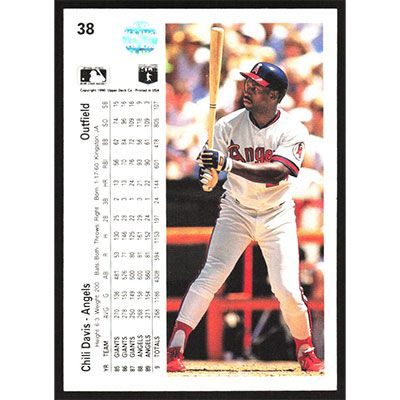 This is a 1990 Upper Deck Chili Davis baseball card. The card is #38 and pictures show condition.