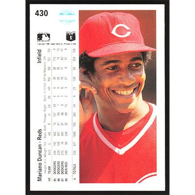 This is a 1990 Upper Deck Mariano Duncan baseball card. The card is #430 and pictures show condition.