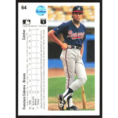 This is a 1990 Upper Deck Francisco Cabrera baseball card. The card is #64 and pictures show condition.