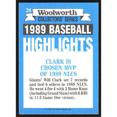 This is a 1990 Woolworth's Topps Will Clark baseball card. The card is #24 and pictures show condition.