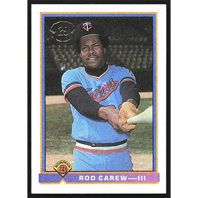 This is a 1991 Bowman Rod Carew III baseball card. The card is #3 and pictures show condition.