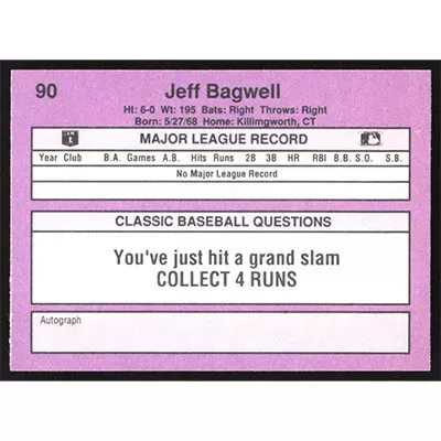 This is a 1991 Classic Game Jeff Bagwell baseball card. The card is #90 and pictures show condition.