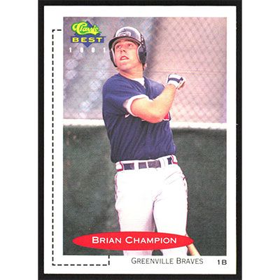 This is a 1991 Classic/Best Brian Champion baseball card. The card is #177 and pictures show condition.
