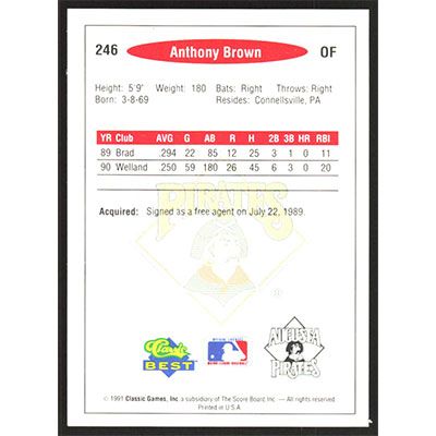 This is a 1991 Classic/Best Anthony Brown baseball card. The card is #246 and pictures show condition.