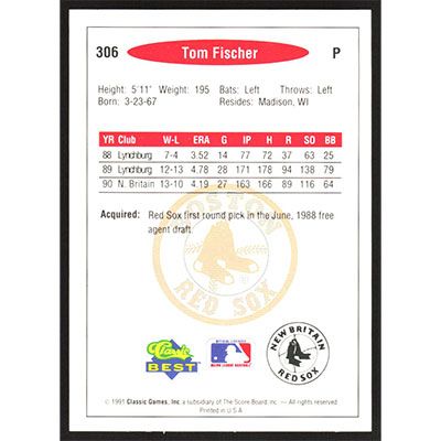 This is a 1991 Classic/Best Tom Fischer baseball card. The card is #306 and pictures show condition.