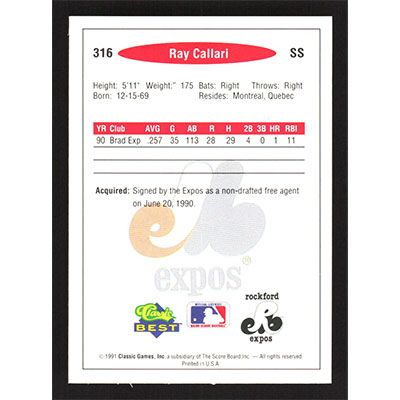 This is a 1991 Classic/Best Ray Callari baseball card. The card is #316 and pictures show condition.