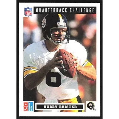 This is a 1991 Domino's Quarterbacks Bubby Brister football card. The card is #21 and pictures show condition.
