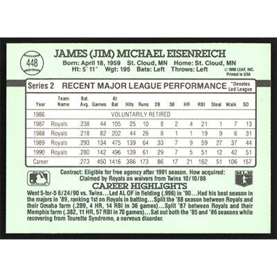 This is a 1991 Donruss Jim Eisenreich baseball card. The card is #448 and pictures show condition.