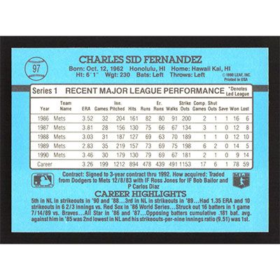 This is a 1991 Donruss Sid Fernandez baseball card. The card is #97 and pictures show condition.