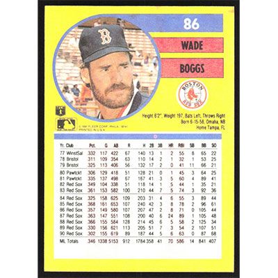 This is a 1991 Fleer Wade Boggs baseball card. The card is #86 and pictures show condition.