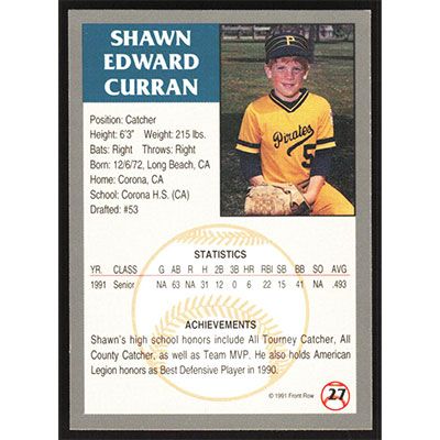 This is a 1991 Front Row Draft Picks Shawn Curran baseball card. The card is #27 and pictures show condition.