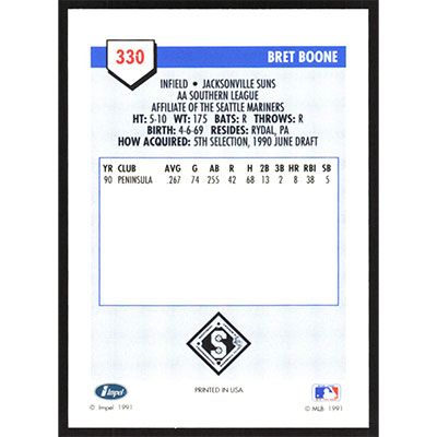 This is a 1991 Line Drive AA Bret Boone baseball card. The card is #330 and pictures show condition.