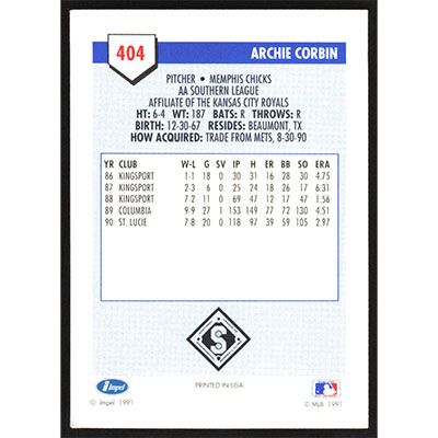 This is a 1991 Line Drive AA Archie Corbin baseball card. The card is #404 and pictures show condition.