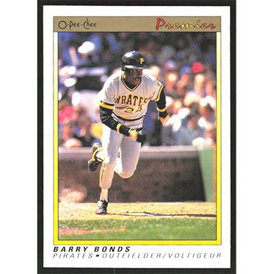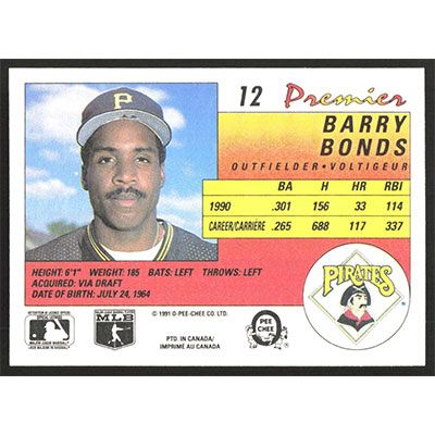 This is a 1991 O-Pee-Chee Premier Barry Bonds baseball card. The card is #12 and pictures show condition.