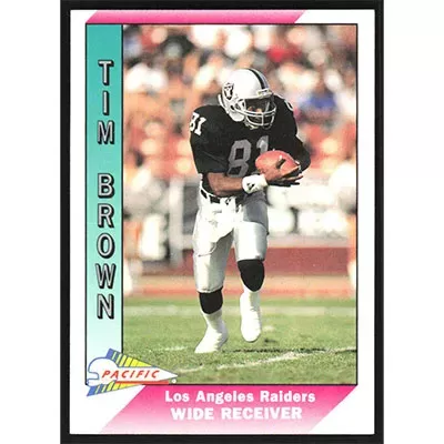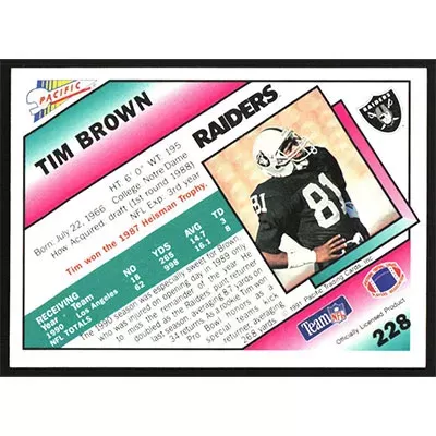 This is a 1991 Pacific Tim Brown football card. The card is #228 and pictures show condition.