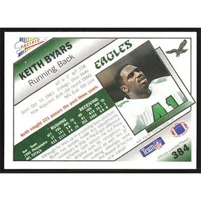 This is a 1991 Pacific Keith Byars football card. The card is #384 and pictures show condition.