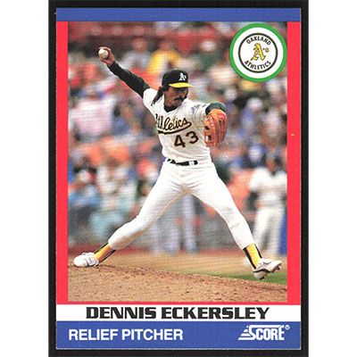 This is a 1991 Score 100 Superstars Dennis Eckersley baseball card. The card is #73 and pictures show condition.
