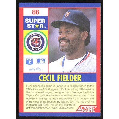 This is a 1991 Score 100 Superstars Cecil Fielder baseball card. The card is #88 and pictures show condition.
