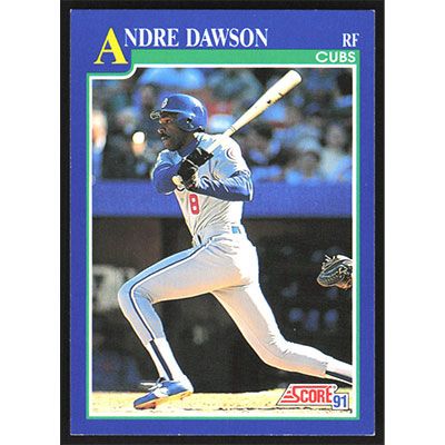 This is a 1991 Score Andre Dawson baseball card. The card is #445 and pictures show condition.
