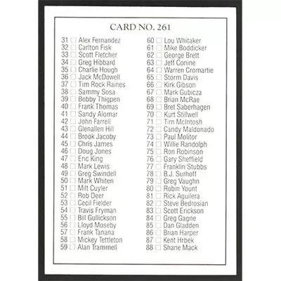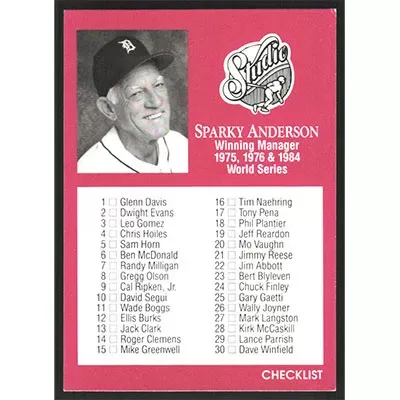 This is a 1991 Studio Sparky Anderson Checklist baseball card. The card is #261 and pictures show condition.
