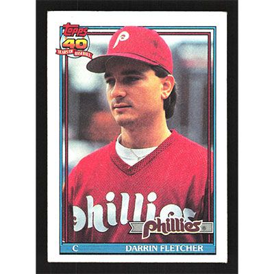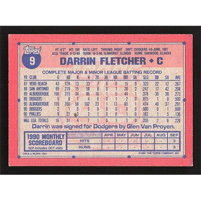 This is a 1991 Topps Darrin Fletcher baseball card. The card is #9 and pictures show condition.