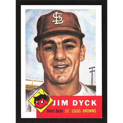 This is a 1991 Topps Archives 1953 Jim Dyck baseball card. The card is #177 and pictures show condition.