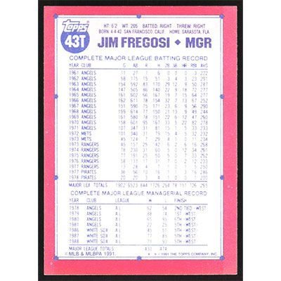 This is a 1991 Topps Traded Jim Fregosi baseball card. The card is #43T and pictures show condition.
