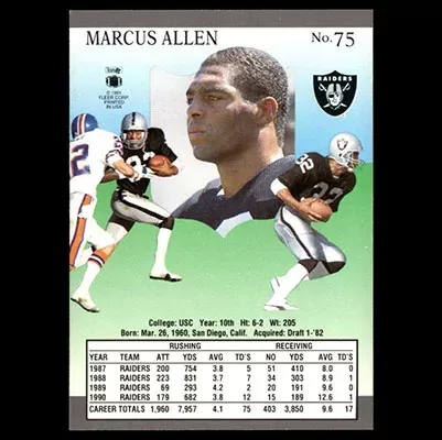 This is a 1991 Ultra Marcus Allen football card. The card is #75 and is in NM-MT condition.