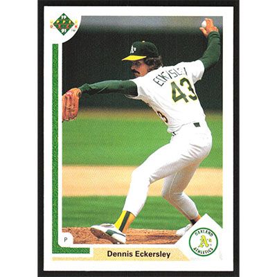 This is a 1991 Upper Deck Dennis Eckersley baseball card. The card is #172 and pictures show condition.