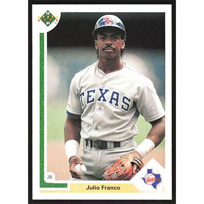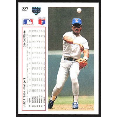 This is a 1991 Upper Deck Julio Franco baseball card. The card is #227 and pictures show condition.