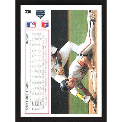 This is a 1991 Upper Deck Steve Finley baseball card. The card is #330 and pictures show condition.