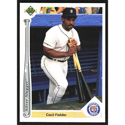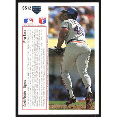 This is a 1991 Upper Deck Silver Sluggers Cecil Fielder baseball card. The card is #SS12 and pictures show condition.