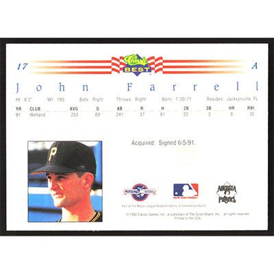 This is a 1992 Classic/Best John Farrell baseball card. The card is #17 and pictures show condition.