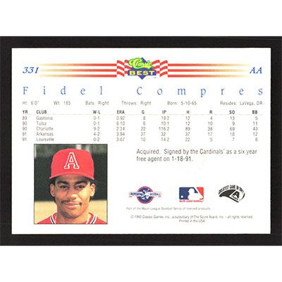 This is a 1992 Classic/Best Fidel Compres baseball card. The card is #331 and pictures show condition.