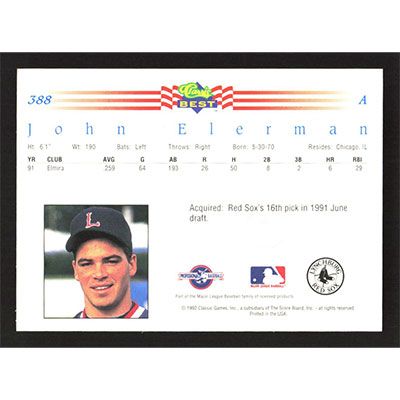 This is a 1992 Classic/Best John Elerman baseball card. The card is #388 and pictures show condition. This card has an uncorrected error, as the name should be John Eierman.
