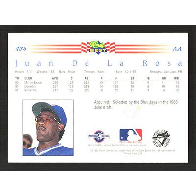 This is a 1992 Classic/Best Juan de la Rosa baseball card. The card is #436 and pictures show condition.