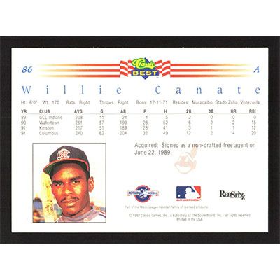 This is a 1992 Classic/Best Willie Canate baseball card. The card is #86 and pictures show condition.