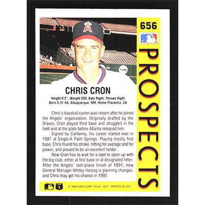 This is a 1992 Fleer Chris Cron Prospects baseball card. The card is #656 and pictures show condition.