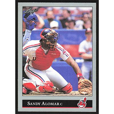 This is a 1992 Leaf Sandy Alomar baseball card. The card is #9 and pictures show condition.