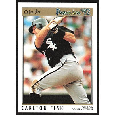 This is a 1992 O-Pee-Chee Premier Carlton Fisk baseball card. The card is #86 and pictures show condition.