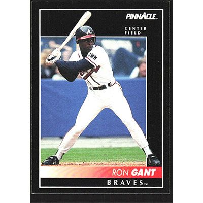 This is a 1992 Pinnacle Ron Gant baseball card. The card is #128 and pictures show condition.