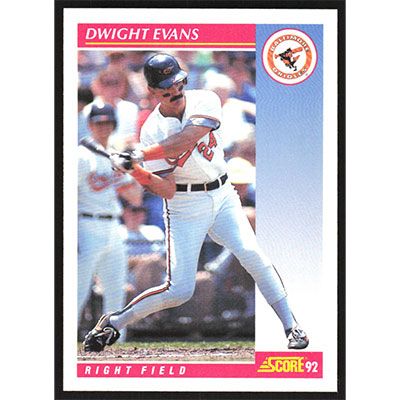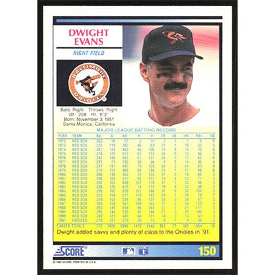 This is a 1992 Score Dwight Evans baseball card. The card is #150 and pictures show condition.