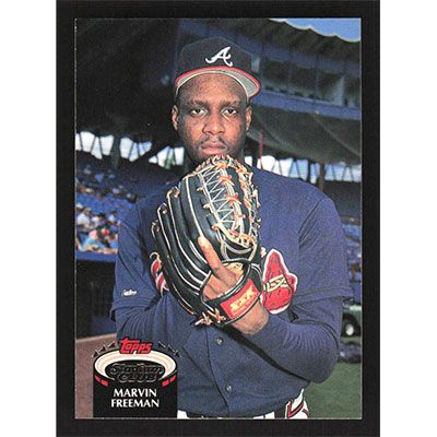 This is a 1992 Stadium Club Marvin Freeman baseball card. The card is #264 and pictures show condition.